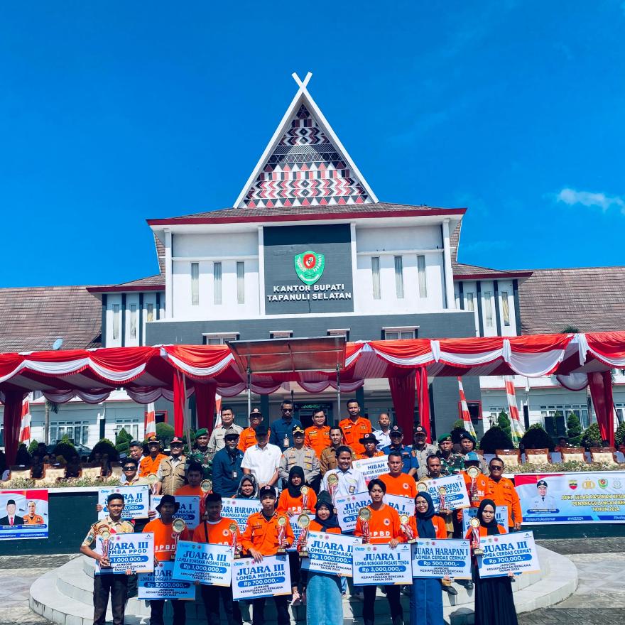 Pada hari Senin,03 Juni 2024 bertempat di Halaman Parade Kantor Bupati Tapanuli Selatan diadakan acara Apel Gelar Kesiapsiagaan Penanggulangan Bencana tahun 2024 bertindak sebagai pimpinan Upacara yaitu Bapak Kapolres Tapanuli Selatan AKBP.Yassir Ahmadi,SIK. Hadir dalam kegiatan tersebut Unsur Muspika Tapanuli Selatan,Kepala OPD, Camat se Kab.Tapanuli Selatan, TNI,Polri, Dinas Terkait, Lurah/Kepala Desa, Tim Destana,Sekolah Tangguh Bencana dan juga dari perwakilan dari PTAR yang merupakan pendukung kegiatan.